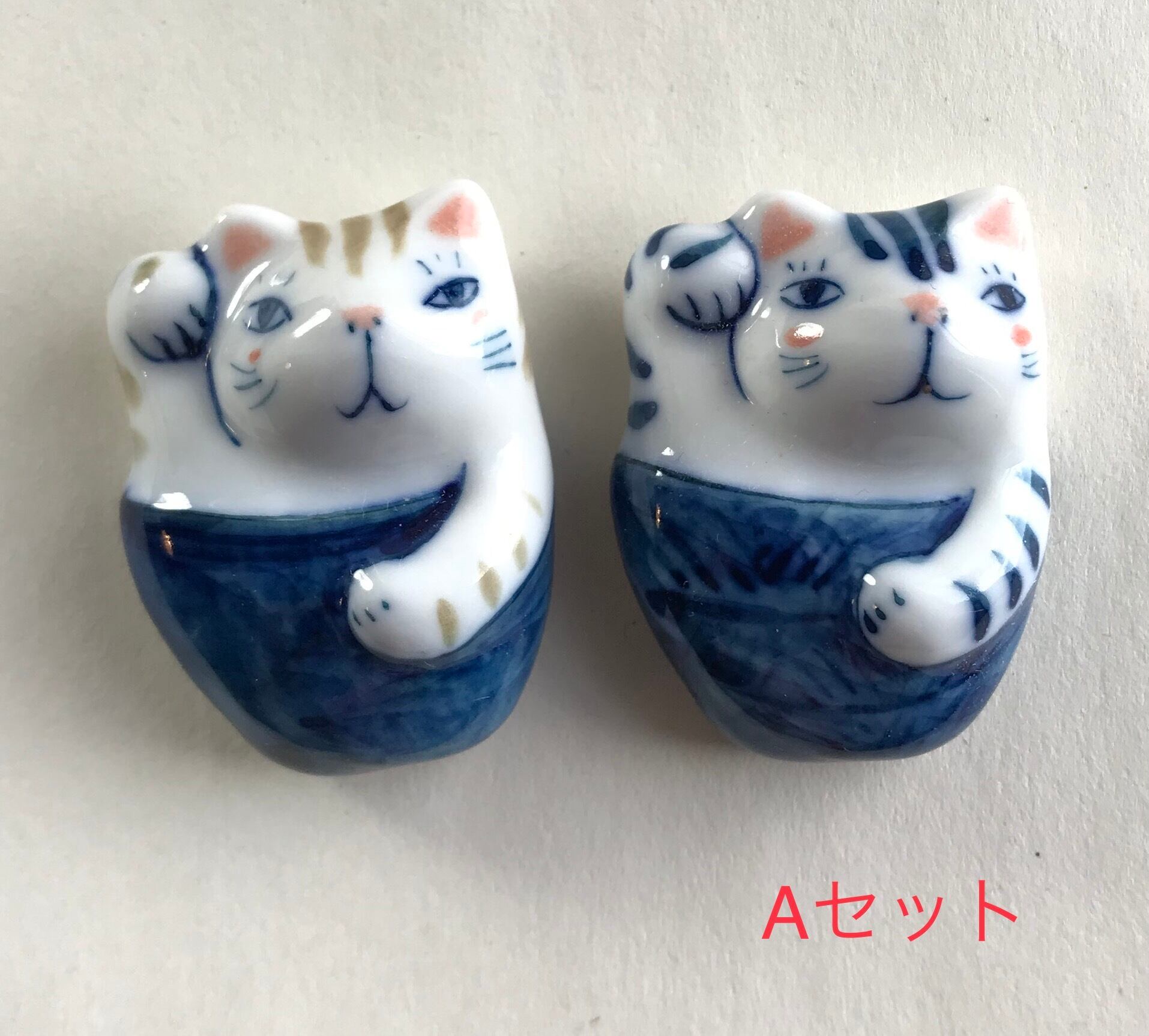 有田焼のカップに入った猫の箸置きセットです。専用BOXに入ったセット販売となりますので、ちょっとした贈り物にも最適です。