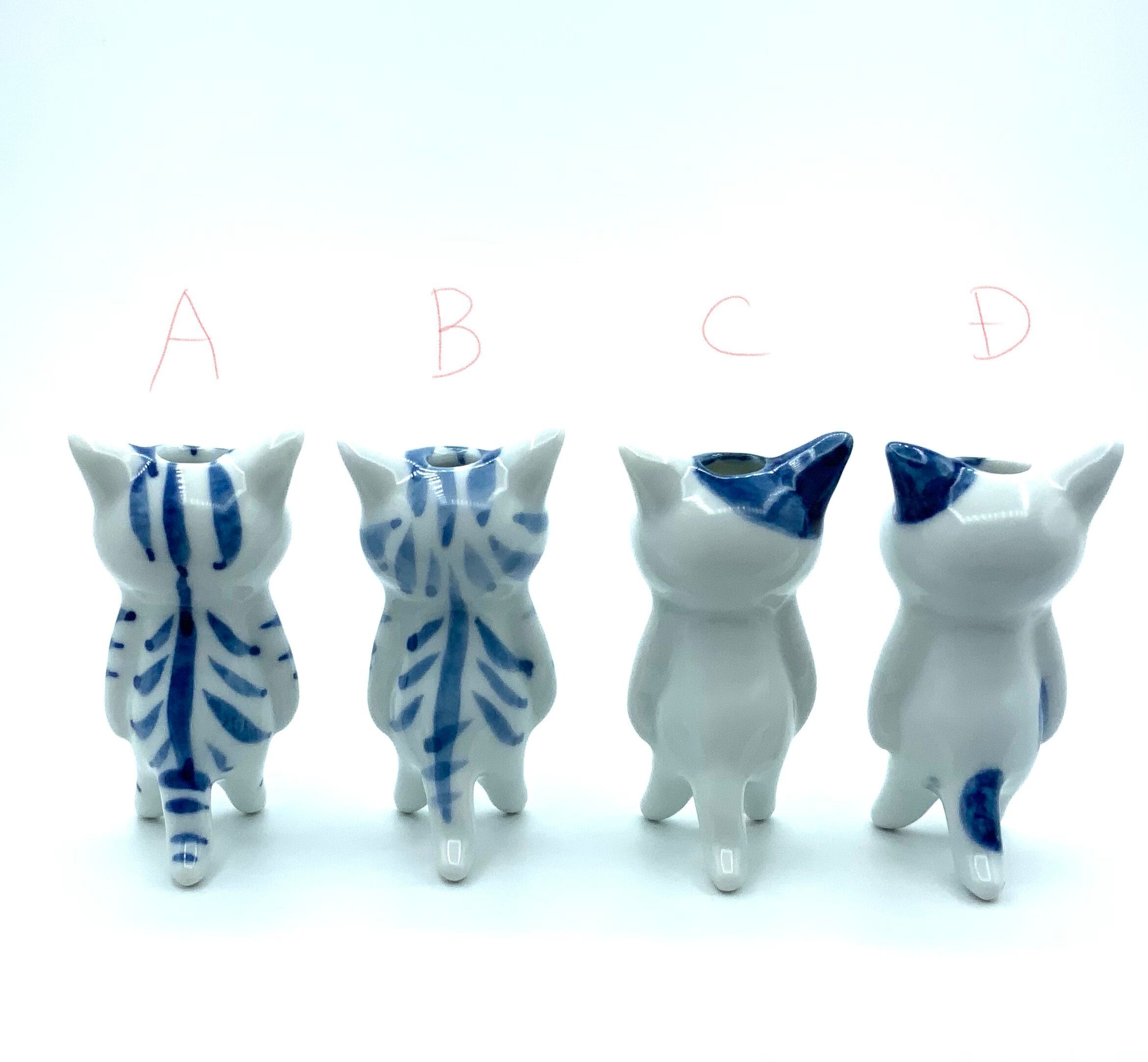 有田焼 猫『花器』立ち姿が凛々しい一輪挿し(小)染付模様シリーズ