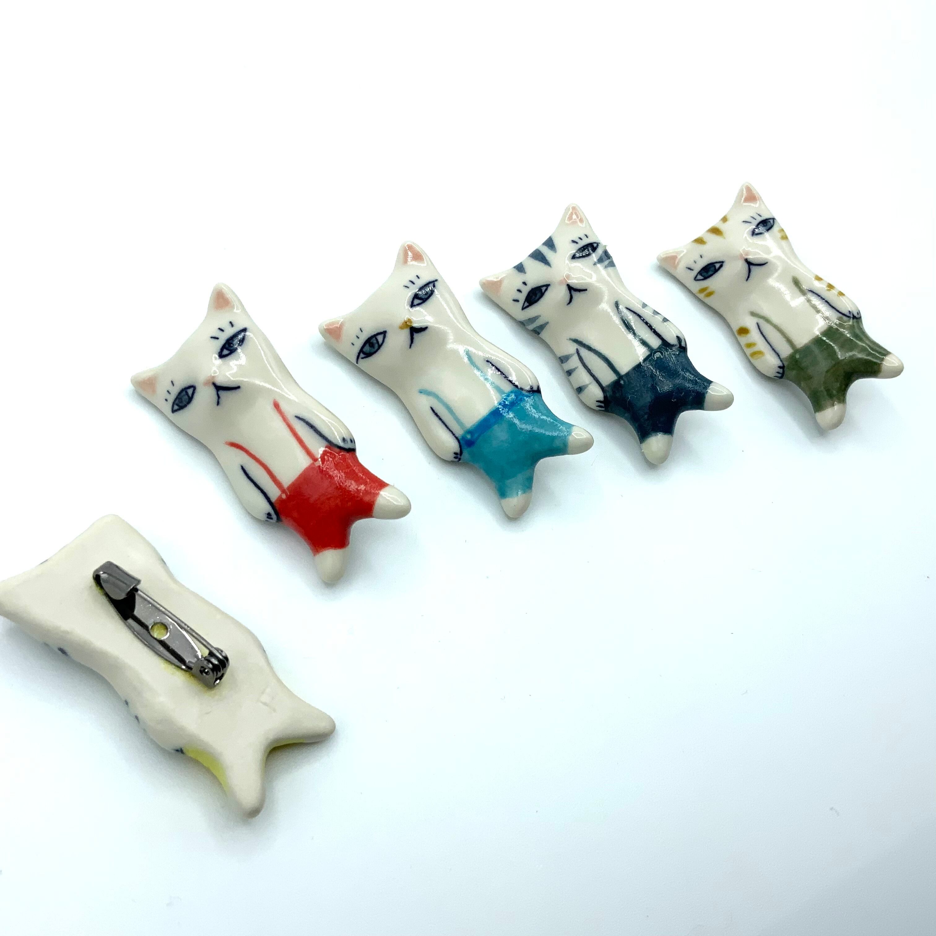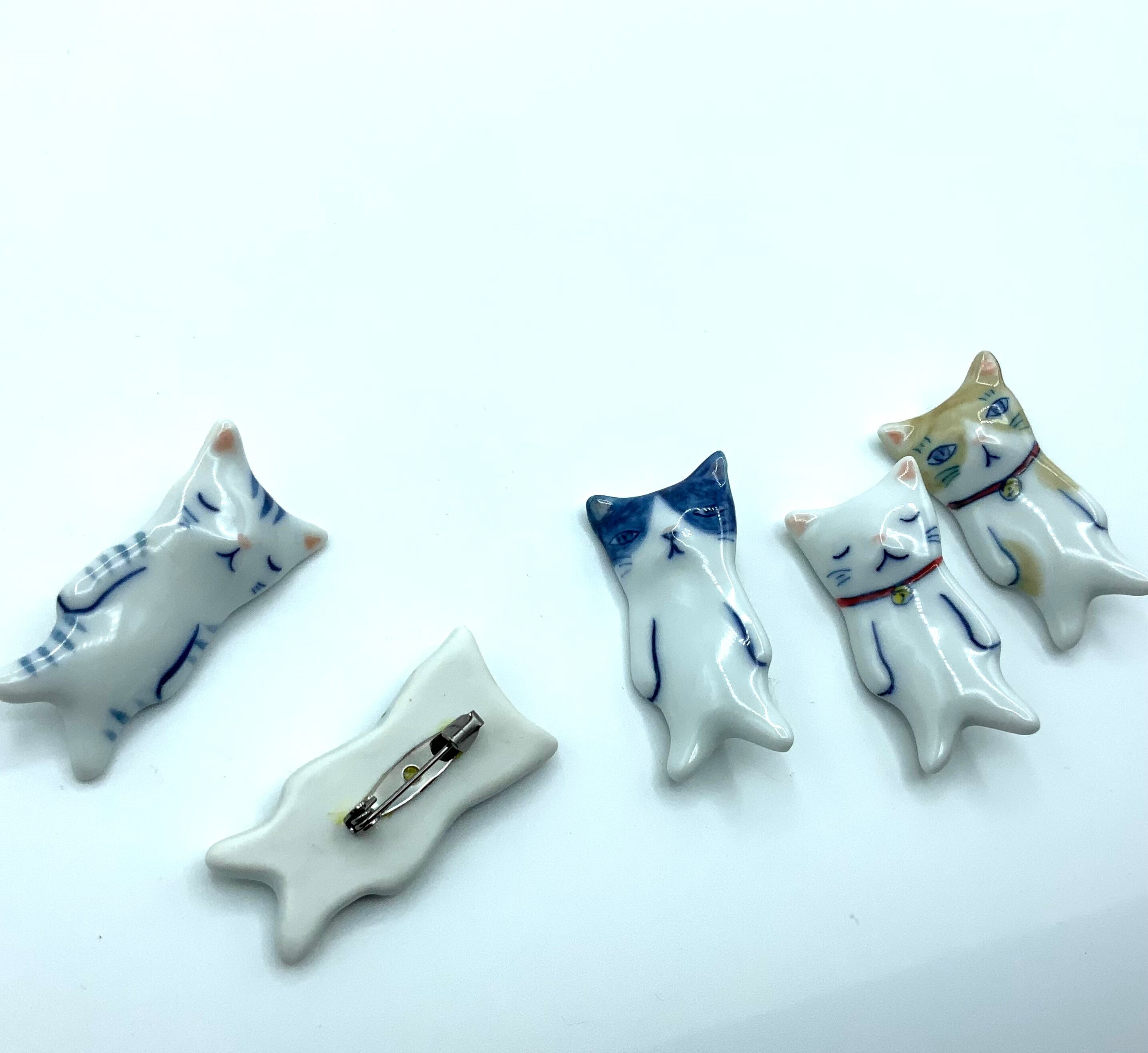 立ってるのか?寝てるのか?人のような猫たちがブローチになりました。