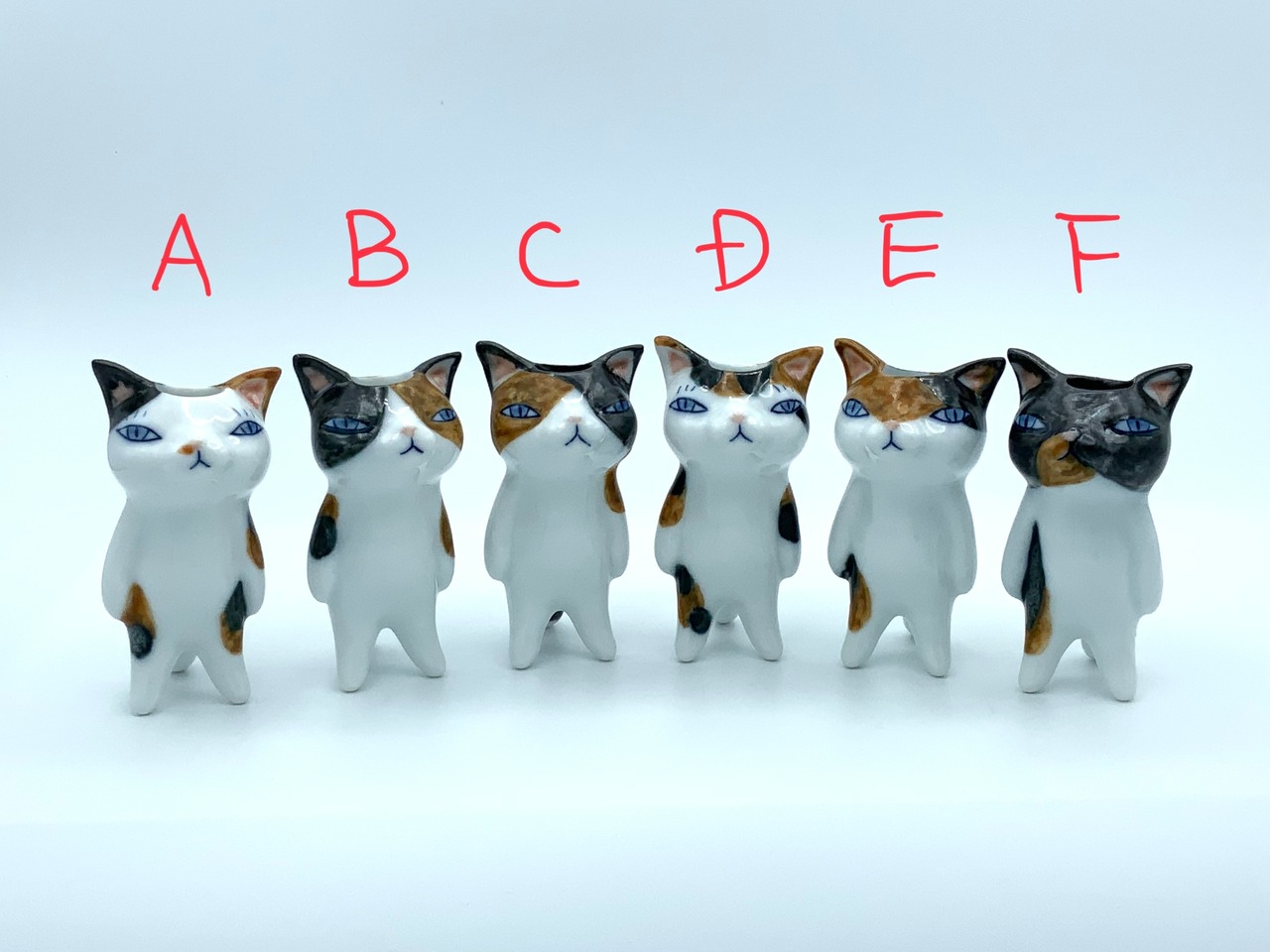 有田焼 猫『花器』立ち姿が凛々しい一輪挿し(小)三毛猫シリーズ