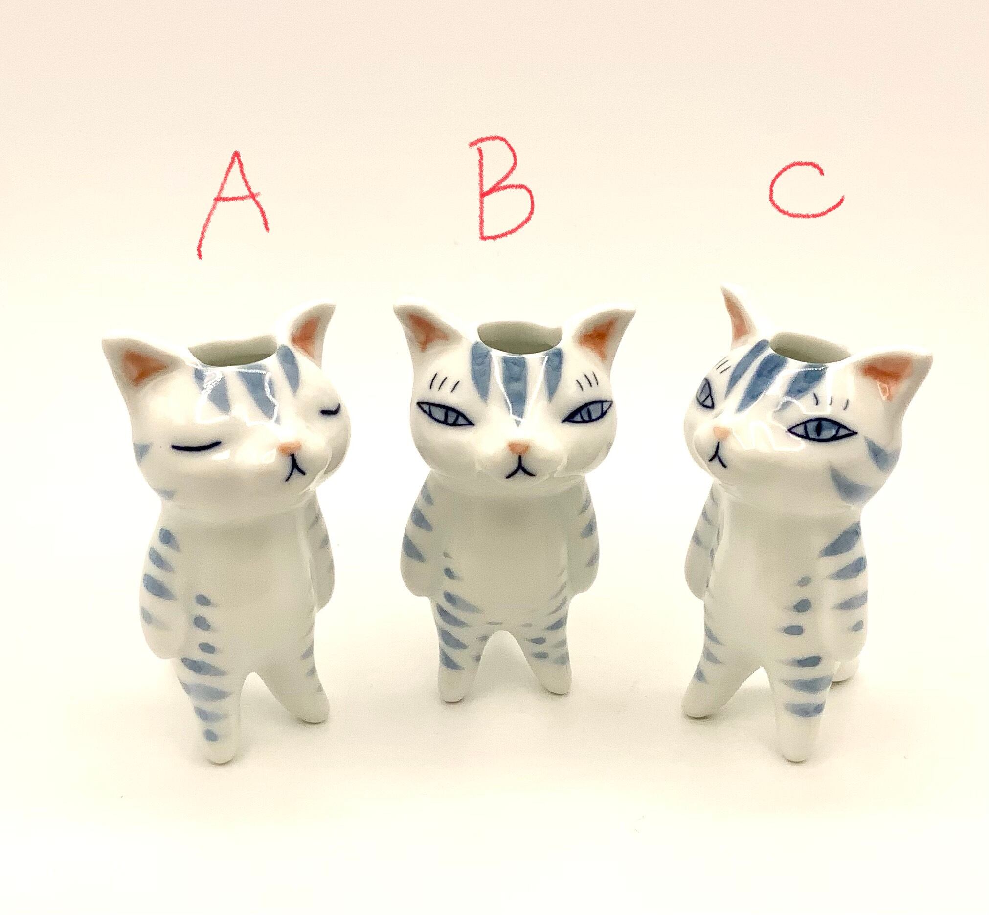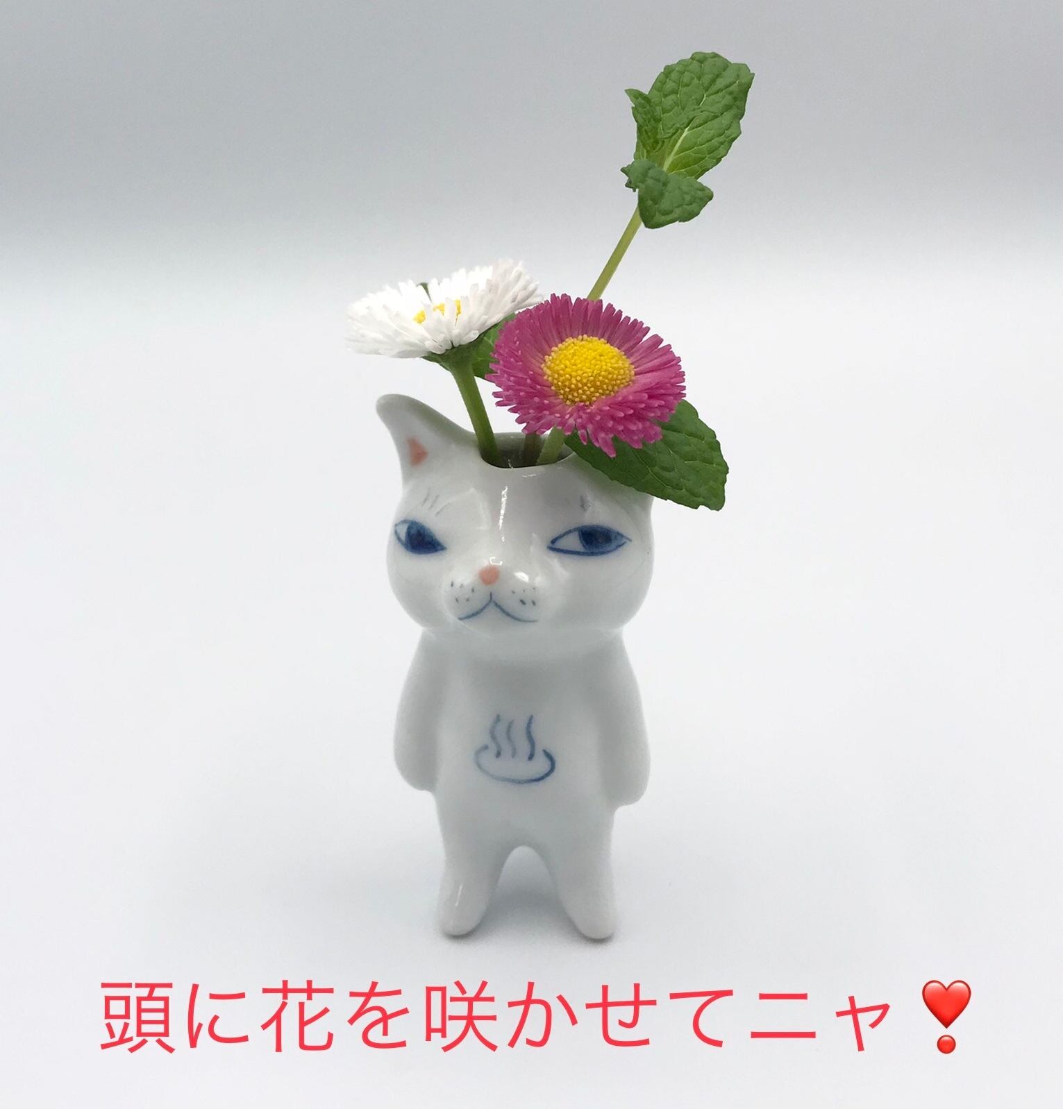 フラワーズ看板猫、一番人気の有田焼のミニ一輪挿しです。