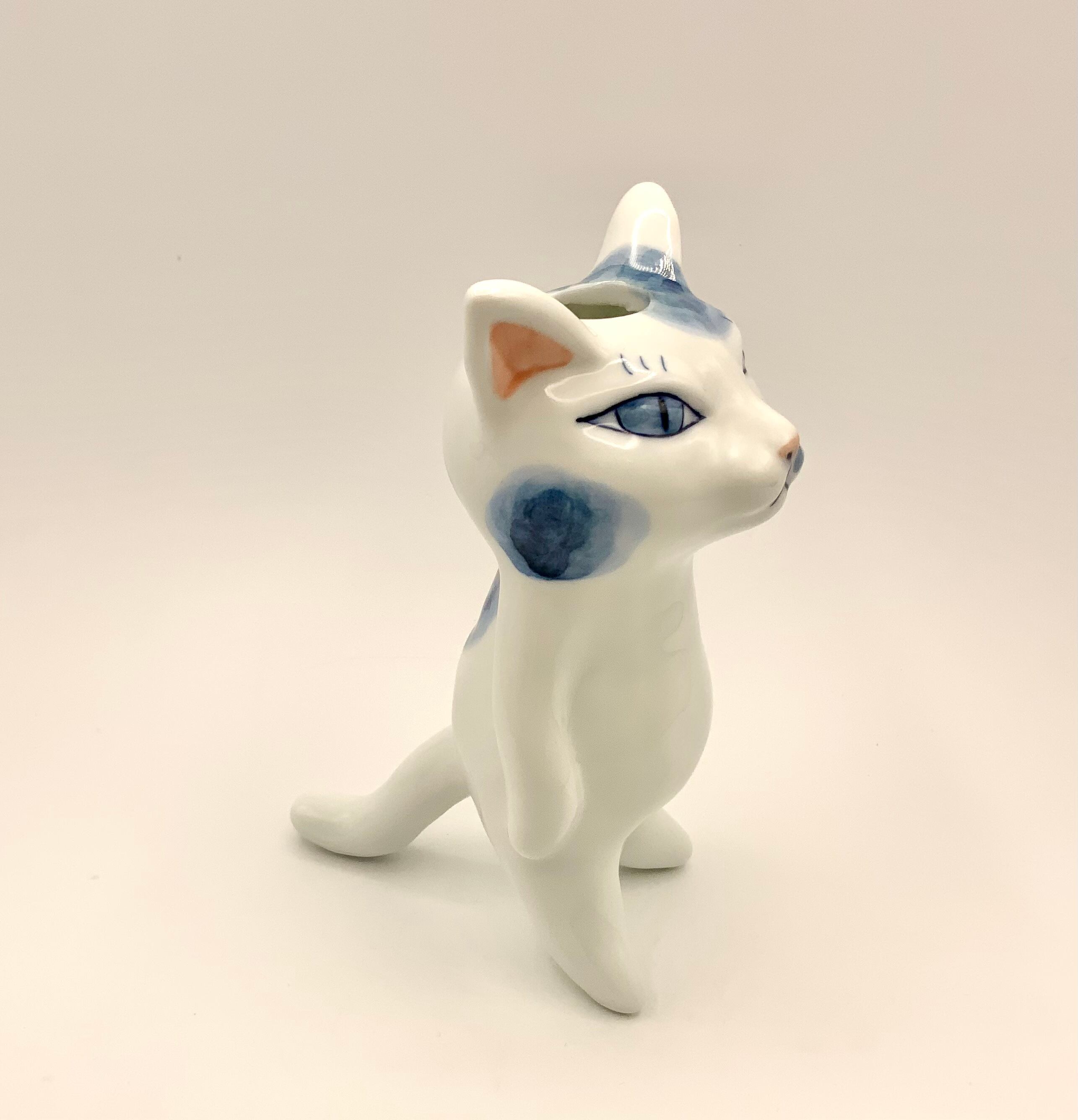 有田焼 猫『花器』仁王立ち(大) 染付バージョン