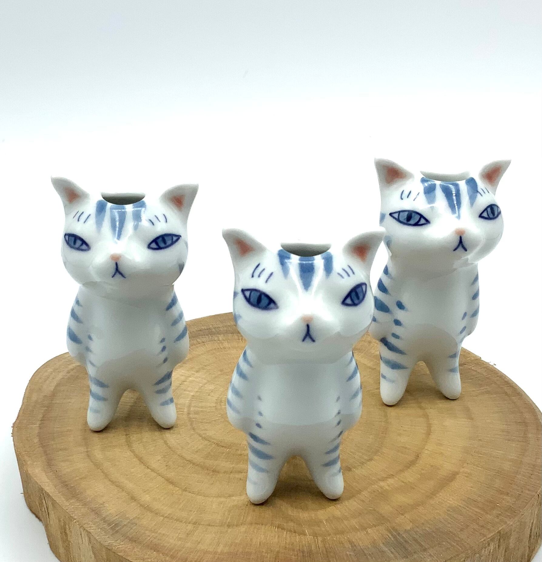 有田焼 猫『花器』立ち姿が凛々しい一輪挿し(小)染付模様シリーズ
