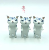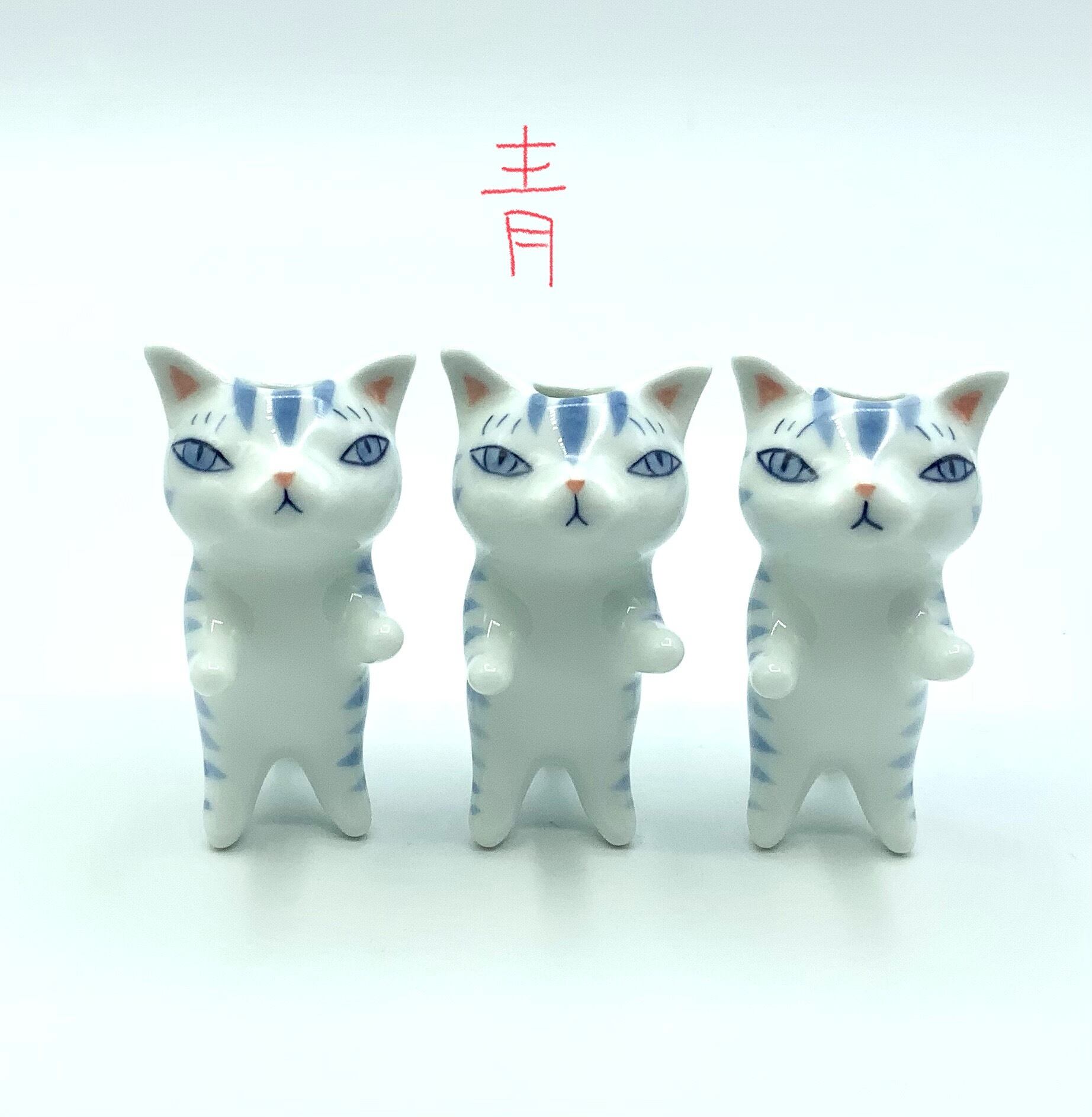 1匹ずつ手描きで描いてますので顔や体の模様が微妙に異なりますが、白猫、青猫、どの子でもお任せでオッケー!というおおらかな方、ご注文くださいませ。