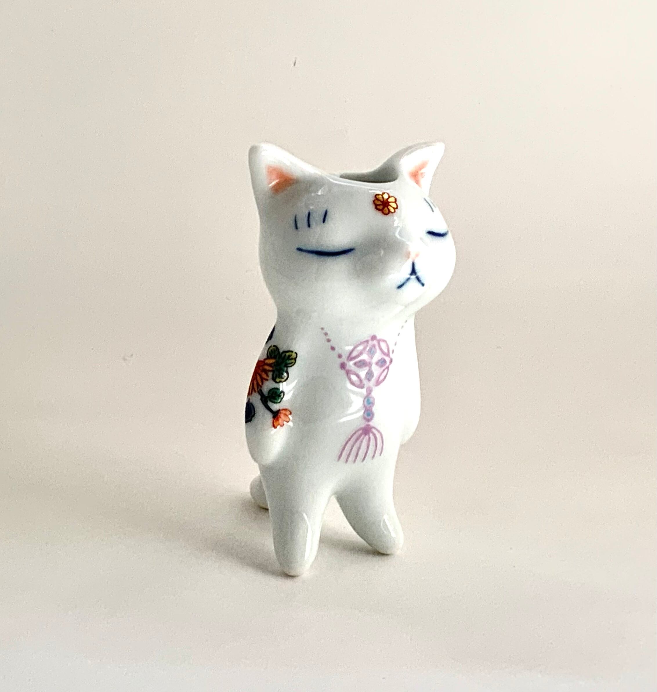 有田焼 猫『花器001』一輪挿し(小)転写シリーズ