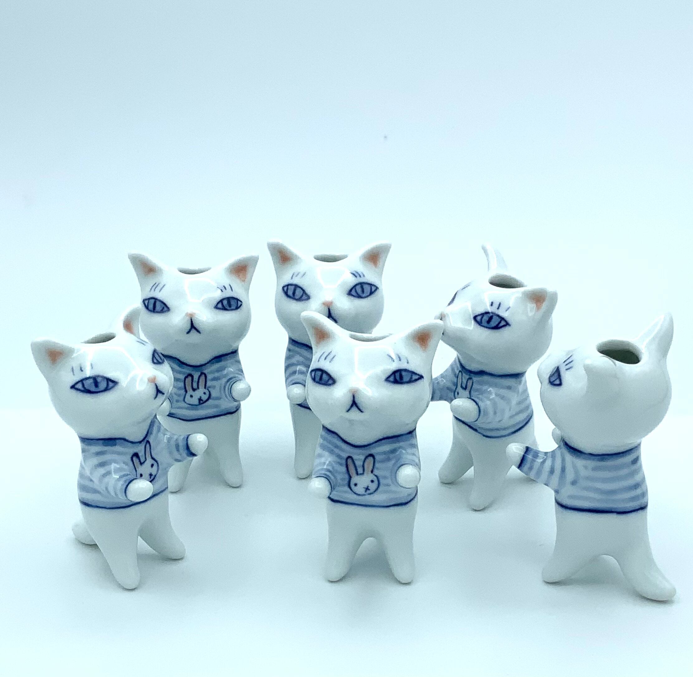 有田焼 猫『花器002』手が出たニャン一輪挿し(小)着衣
