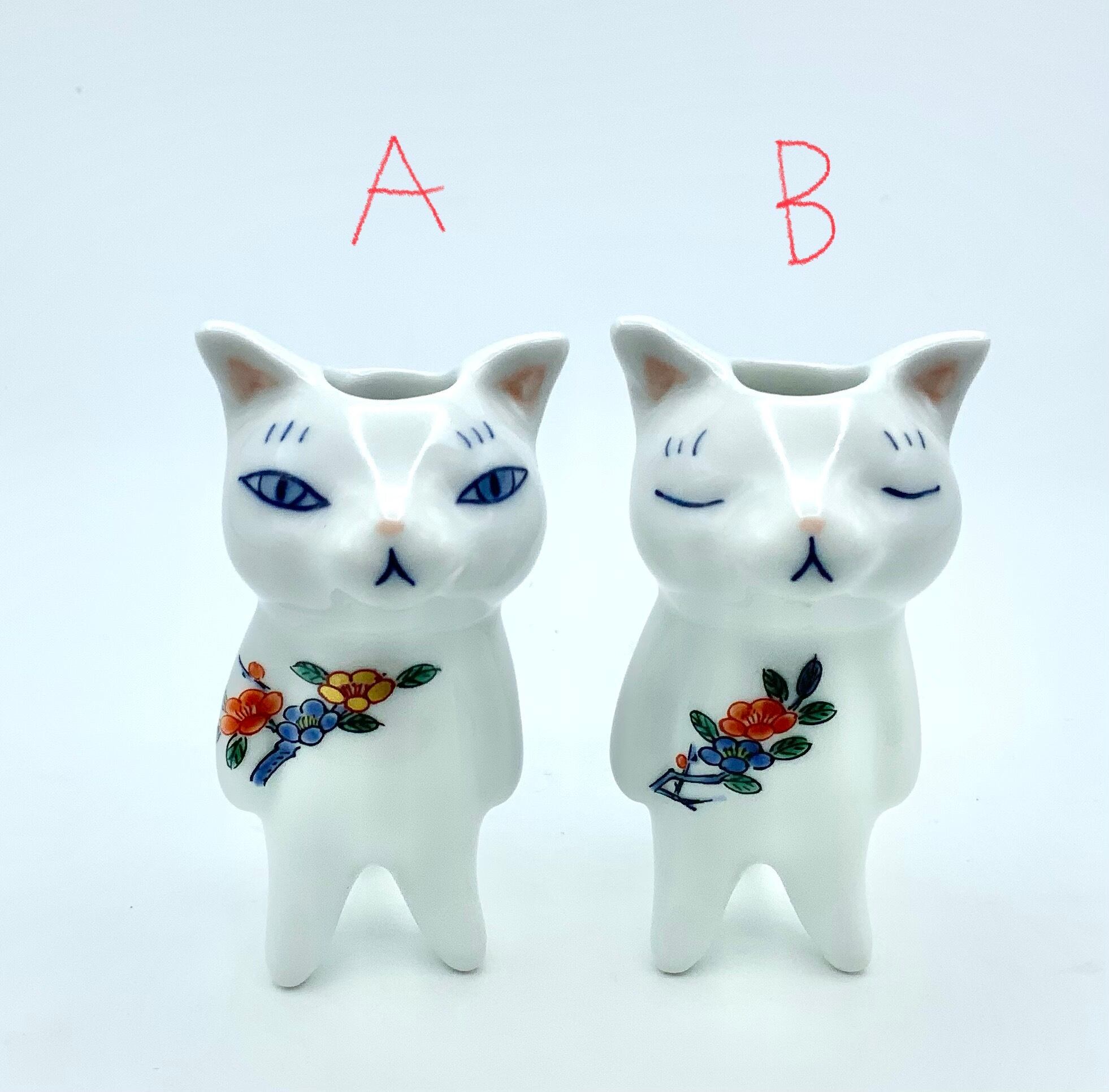 フラワーズ看板猫、一番人気の有田焼のミニ一輪挿しです。カラフルな転写シリーズです。