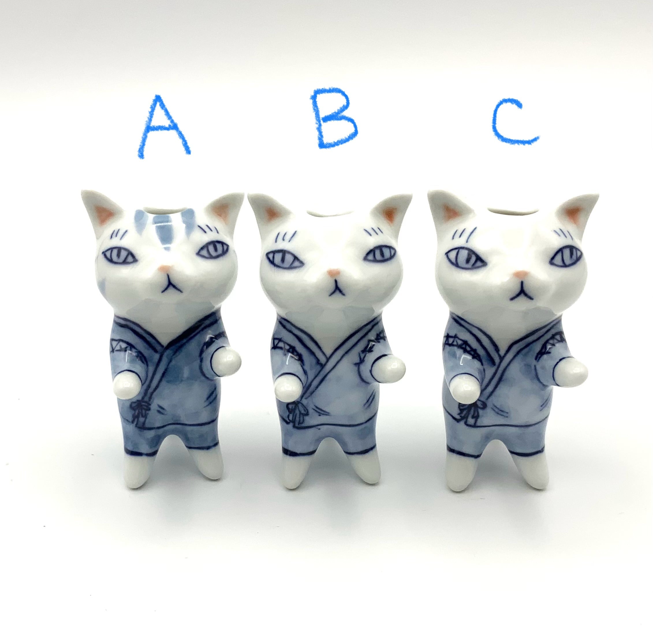 有田焼 猫『花器002』手が出たニャン一輪挿し(小)着衣